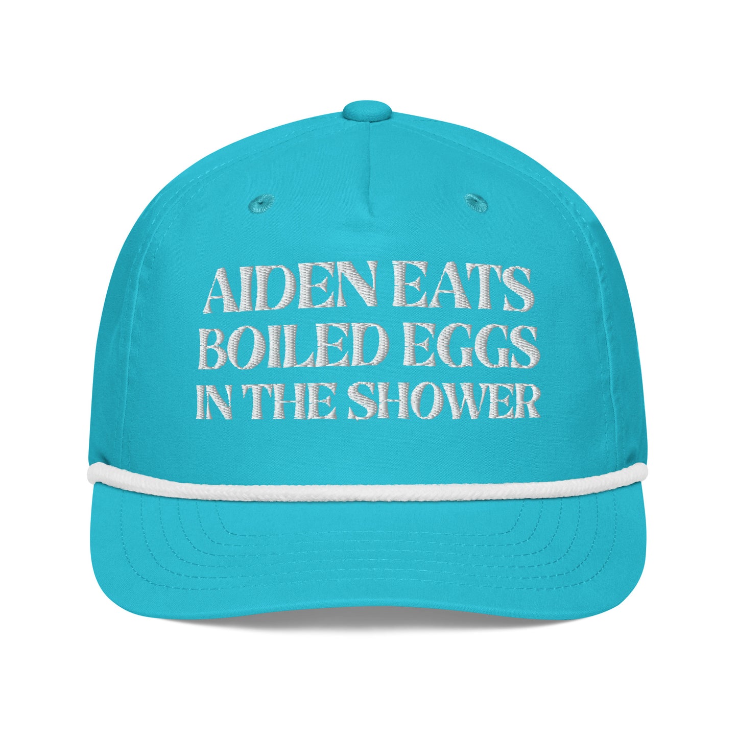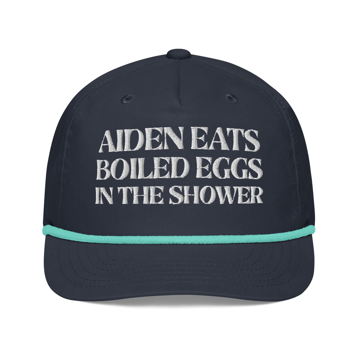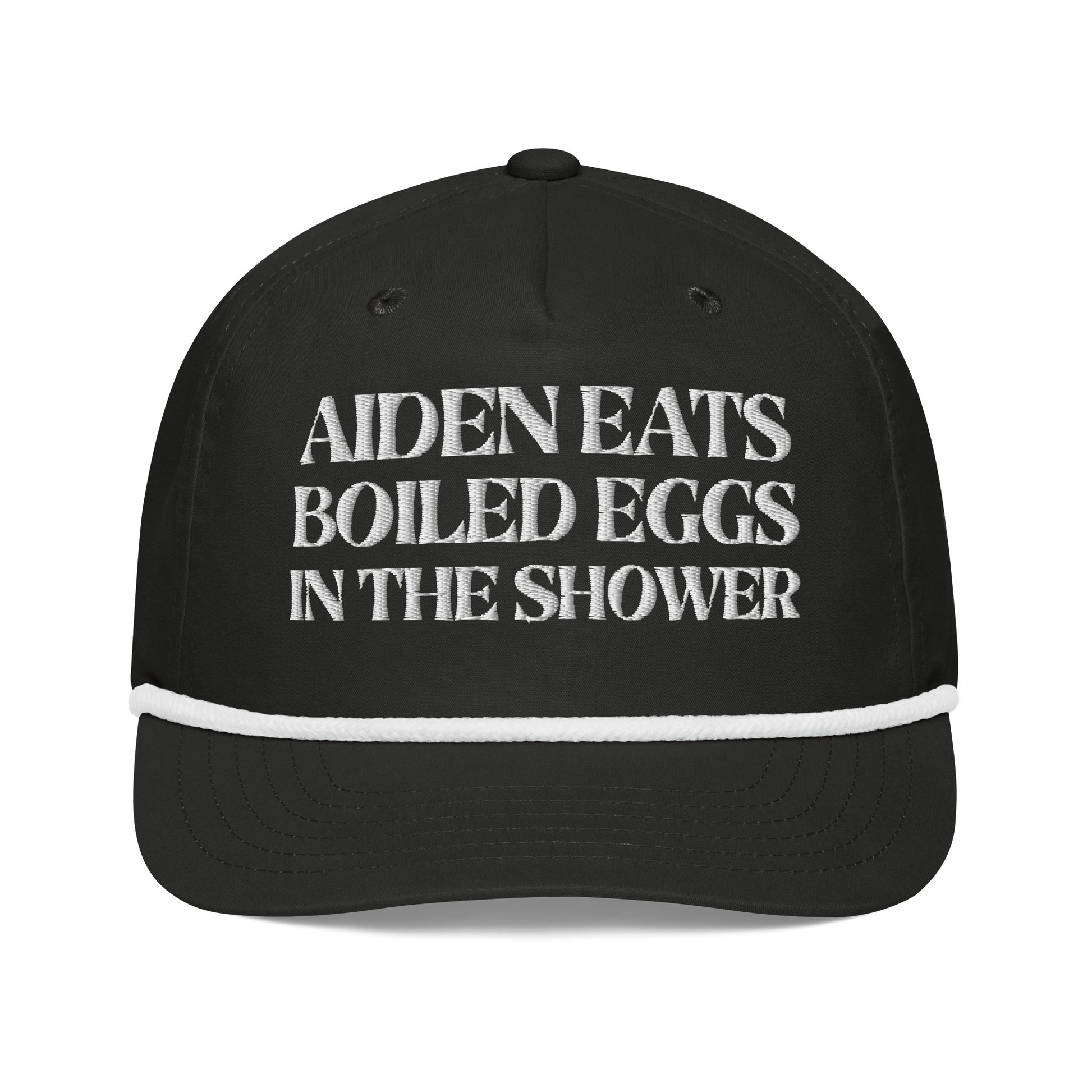 Aiden eats boiled eggs in the shower hat